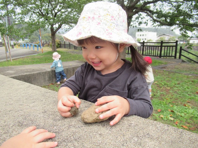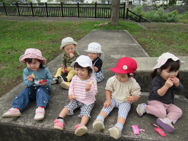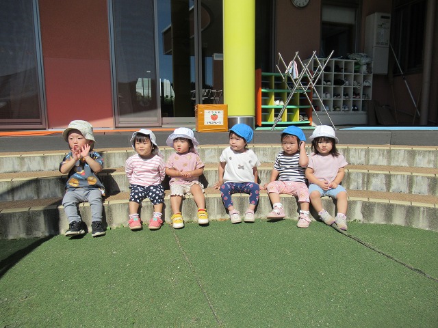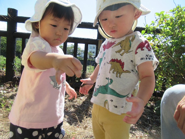 少しずつ涼しい日が増えてきたので、天気がいい日はお散歩を楽しんでいます!トンボを見つけて指さしたり、葉っぱを拾ったり、砂をさわったり…自然からたくさんの刺激をもらっているひよこ組です♪お友だちとのかかわりやお話も上手になってきて、かわいらしいやりとりにほっこりの毎日です♡