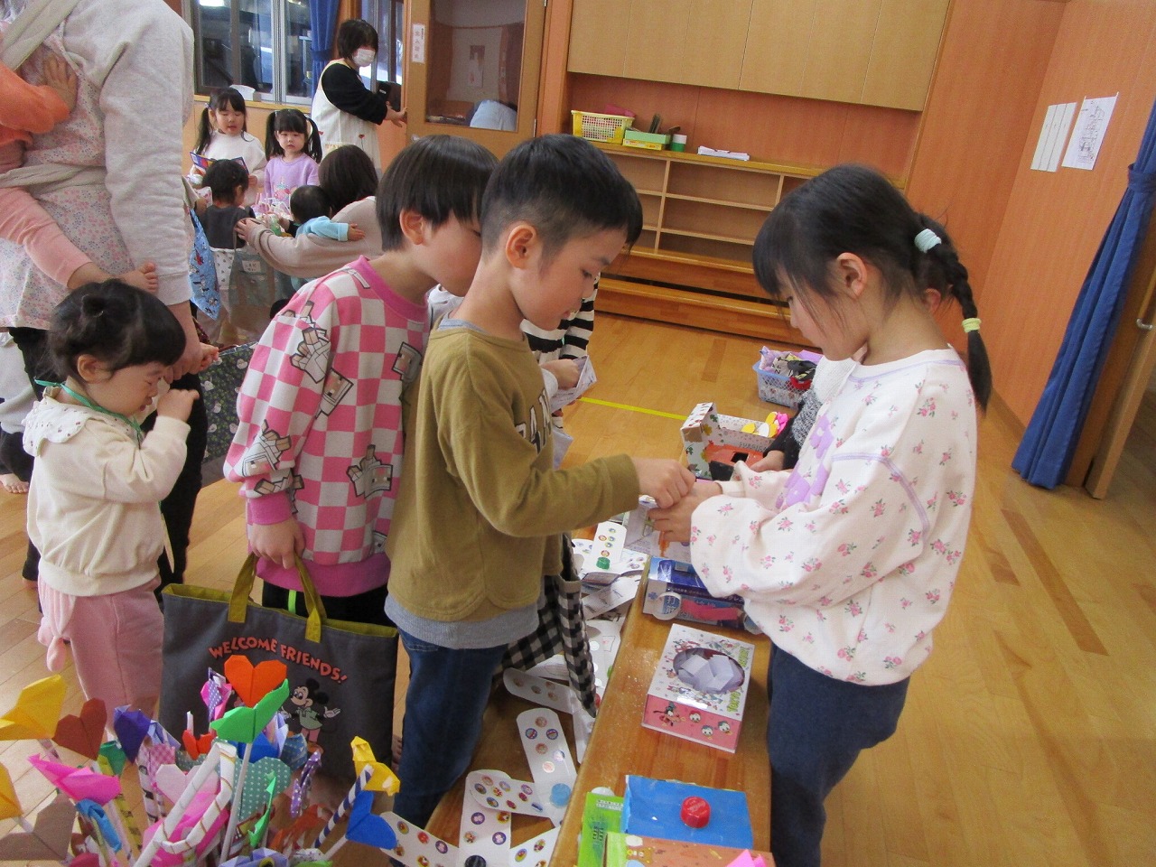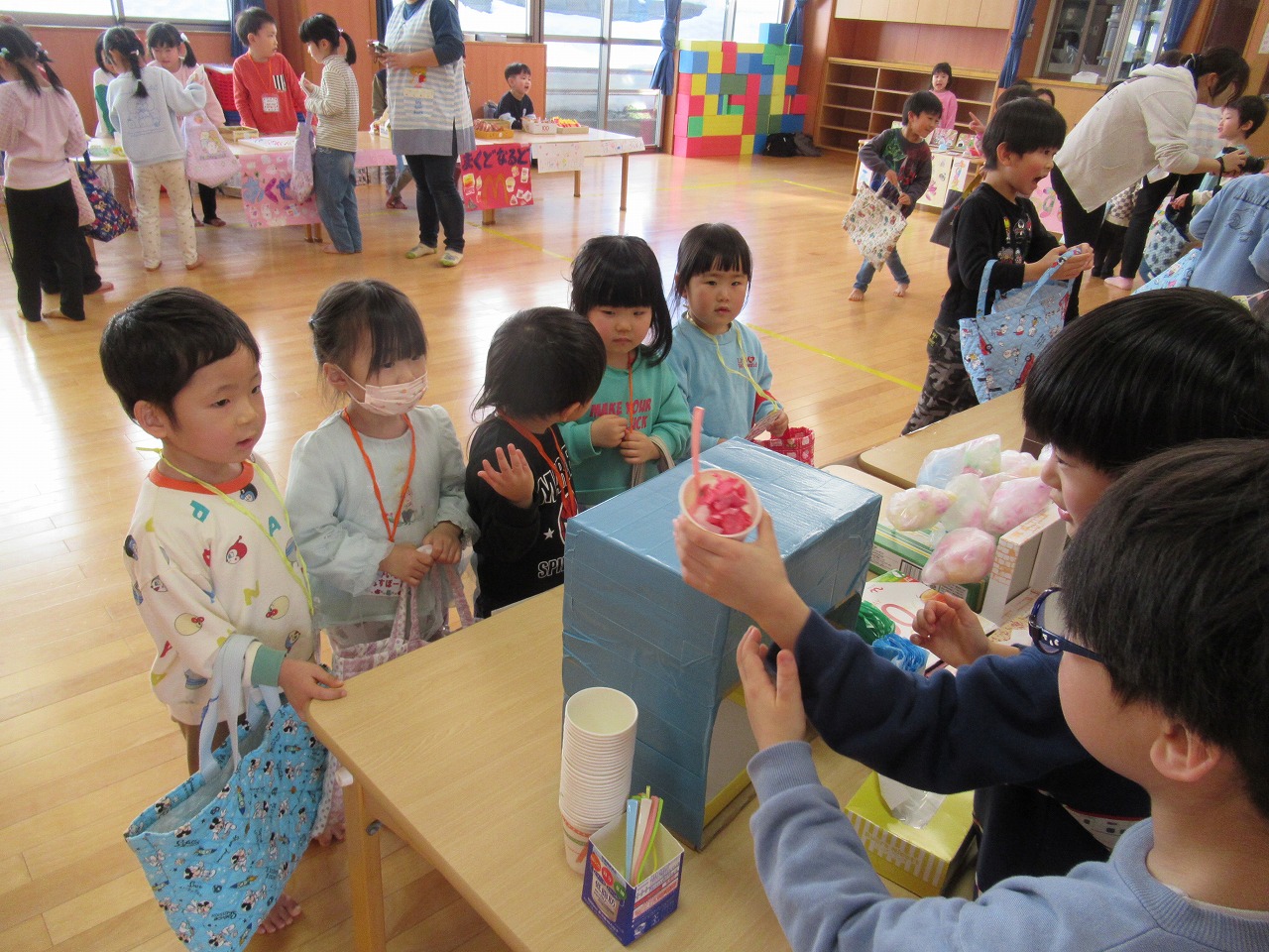 子どもたちが楽しみにしていたお店屋さんごっこは大盛況でした☻準備期間中も、年下の友だちを思い浮かべながら丁寧に作ろうとする姿や、友だちと意見を出し合いながら作る姿が多く見られ成長を感じました。今年度も残りわずかにはなりましたが、進級に期待をもって過ごせるようにしていきたいと思います。