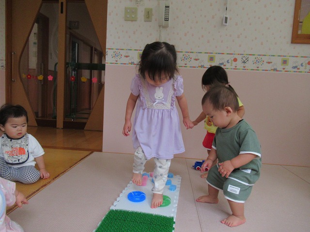 毎日いろんなことに挑戦しているりす組の子どもたち。食事用のエプロンを「自分で!」とつけようとし、自分でズボンを脱ぐとトイレに向かい、排泄も少しずつ頑張っています♪毎日いろいろなことに挑戦しようとする姿にたくましさを感じます(^^♪肌寒い日が続きますが、秋の気持ちいい風を感じながら、お散歩にもいきたいです!夏に負けないたくさんの思い出を作りたいと思います☆