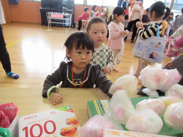 お店屋さんごっこに向け、みんなで話し合い、くま組はくじ引きと屋台を出店しました。自分たちの考えを形にすることの難しさや自分たちの力で作れる楽しさを味わい、友だちと協力しながら楽しむことができました。くま組での生活も残り少なくなってきたので、就学に期待をもちながら、楽しく生活できるようにしていきたいです。