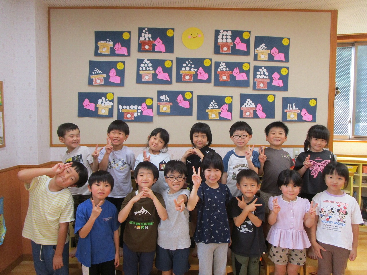 お盆中に楽しい思い出がたくさんできた子どもたちはお休み明けから毎日のように思い出トークに花を咲かせています!「プール行ったよ!」「お祭りに行ってチョコバナナ食べたよ!」など沢山お話をしてくれてとても微笑ましいです(^^)園でも負けないくらい楽しい思い出を増やしたいと思います!