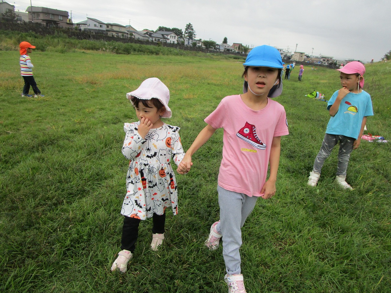 涼しい季節となり、朝から戸外あそびができる日が多くなってきました。とんぼが多くなったことや葉の色が少しずつ変わってきていることなど、子どもたちなりに季節の変化を感じているようです。最近は、運動会に向けた活動に参加する時間も多くなり、初めての運動会にドキドキ・ワクワクの子どもたちです☆お兄さん、お姉さんの真似っこをしながら、日々成長しているうさぎ組!本番も一生懸命頑張ります!!