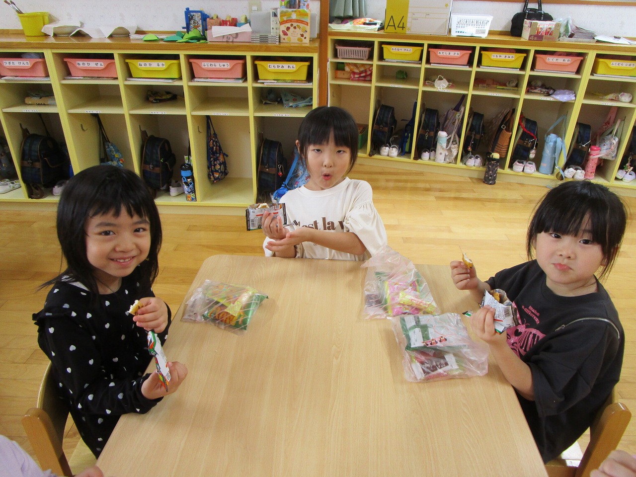 朝夕涼しくなり、季節はすっかり秋模様となってきました。虫の声を聞いたり、とんぼを捕まえたりと秋の自然に触れながら、戸外あそびを楽しんでいます。運動会に向けた活動では、年下のお友だちの面倒をみたりしながら、かけっこやリレー、ゆうぎも張り切って取り組んでいます。くま組最後の運動会!応援よろしくお願いします!