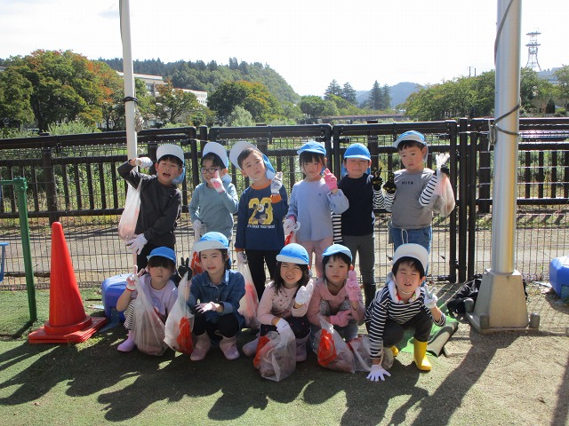 肌寒く感じられる日も増えてきていますが、子どもたちは、まだまだ汗だくになりながら遊んでいます。戸外に出ると、コオロギやトンボなど秋の虫に夢中になる子や、落ち葉を使ってままごとをする子など一人一人が秋の自然に触れて楽しんでいます。運動会に向けた活動が始まり毎日意欲的に取り組んでおり、時にはうさぎ組のお友だちを手伝う姿に成長を感じています。これから運動会にお散歩遠足、いもほりと行事が盛りだくさんなので体調に気をつけて過ごしていきたいと思います。