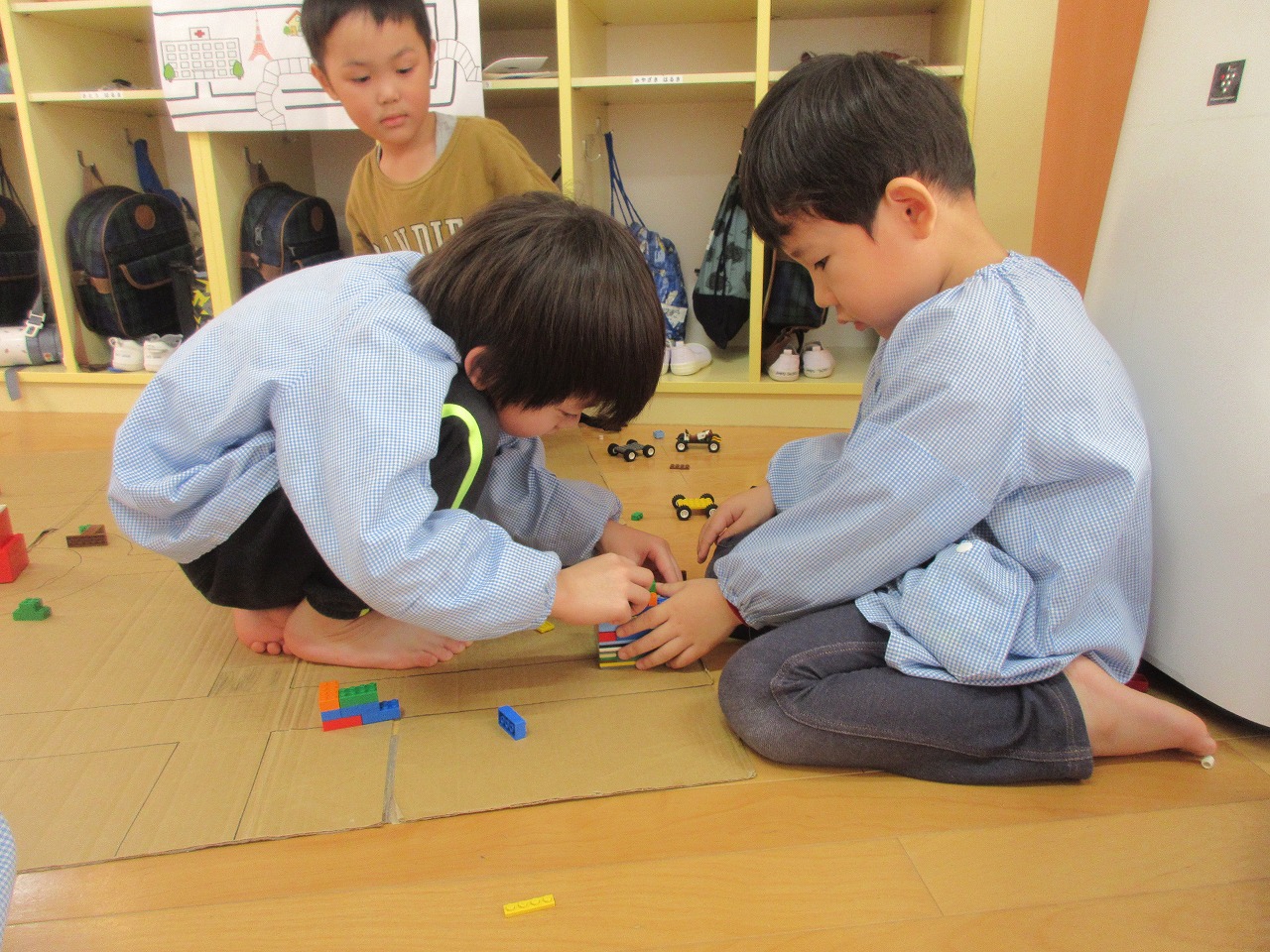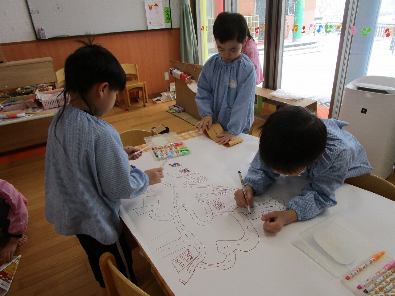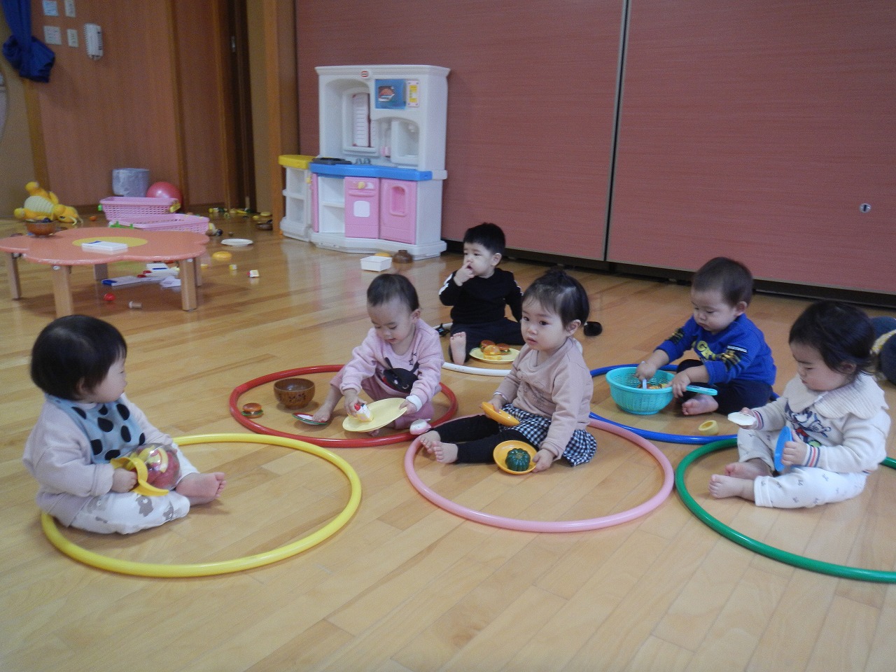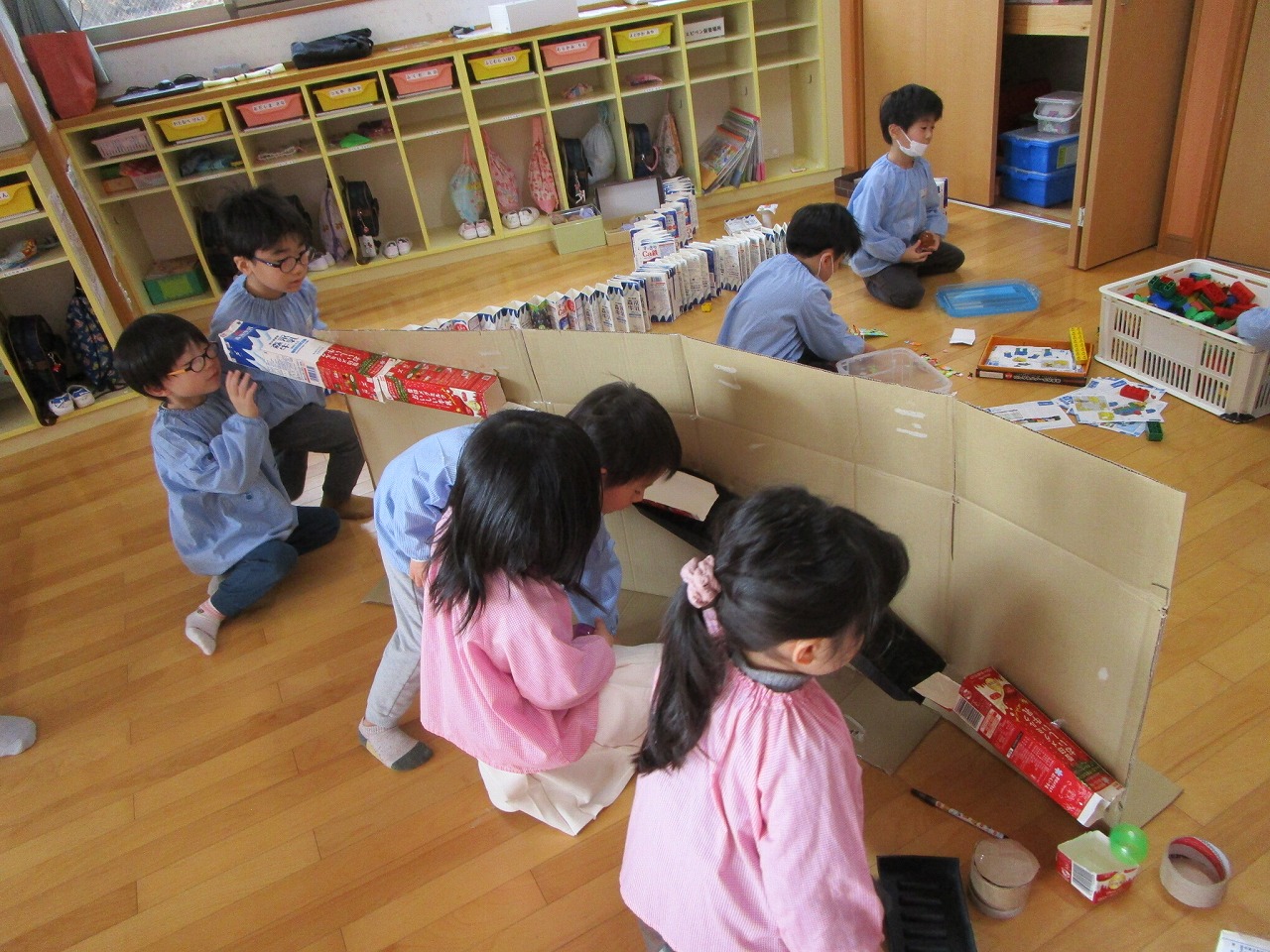 おゆうぎ会を終え、少しのんびり過ごしている子どもたちです。おゆうぎ会の練習が始まった頃から、みんなが意欲的に活動に参加し、楽しむ姿が見られました。また、初めての劇あそびでしたが、絵本を見てあそびから始めたことで、一人一人がセリフや動きを覚え、徐々に形になっていき、子どもたちの成長を感じました。おゆうぎ会は全員での参加とはなりませんでしたが、この経験は子どもたちにとって自信につながったと思うので、今後にも活かしていきたいと思います。
