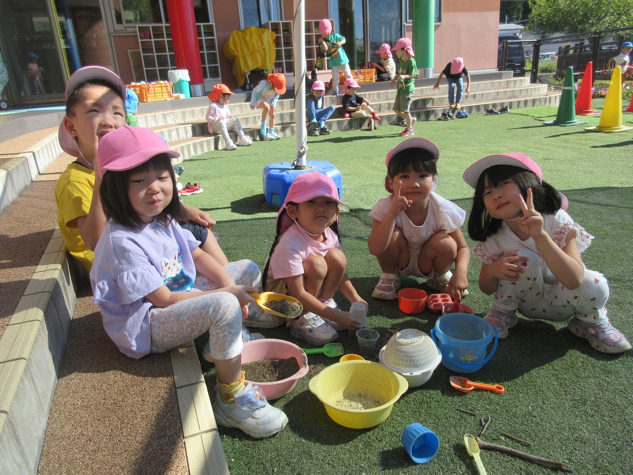 暑い日が多くなりましたが、子どもたちは元気に過ごしています。園庭に日よけが出ると「プールやるの?」と気持ちはもう真夏のようです(笑)梅雨に入り、天気が安定しないこともあると思いますが、戸外でも室内でも元気いっぱいに過ごしたいと思います!