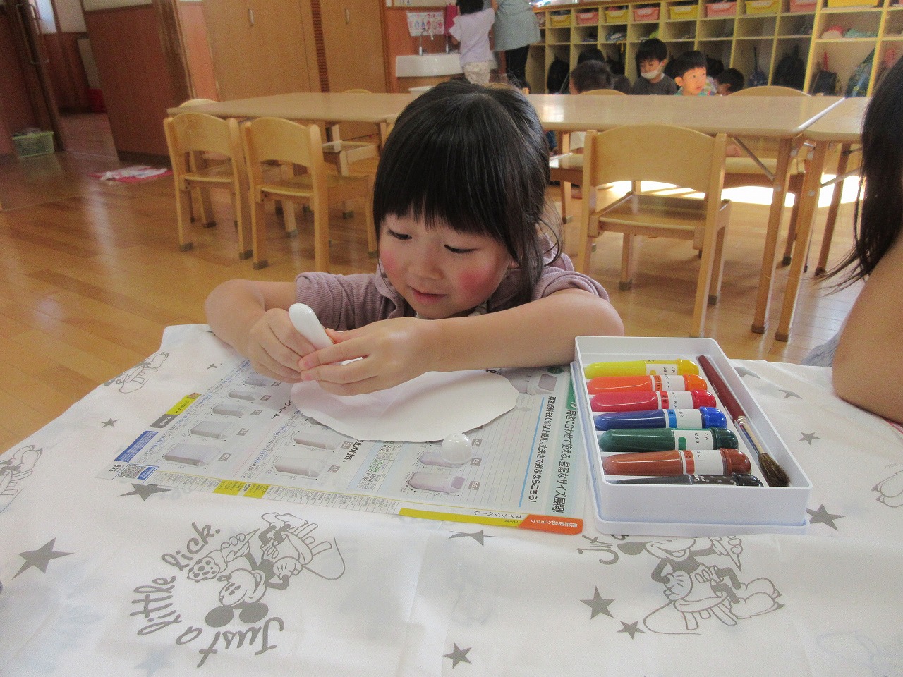 お盆中に楽しい思い出がたくさんできた子どもたちはお休み明けから毎日のように思い出トークに花を咲かせています!「プール行ったよ!」「お祭りに行ってチョコバナナ食べたよ!」など沢山お話をしてくれてとても微笑ましいです(^^)園でも負けないくらい楽しい思い出を増やしたいと思います!