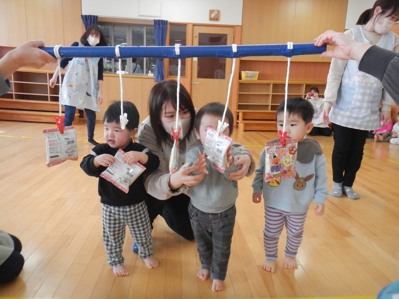 楽しいお正月を過ごし、また子どもたちのにぎやかな声であふれる日々が始まりました♪年末年始のお休みの間にも、お話が上手になったり動きがますます活発になったりと、成長を見せてくれるひよこ組さんです。最近は、お友だちとのかかわりもますます増えてきました!かわいらしいやりとりに加え、活発さもレベルアップし、かかわりのバリエーションも豊かです!けがなどに十分注意しながら見守っていきたいと思います。今年も一年、よろしくお願いいたします。