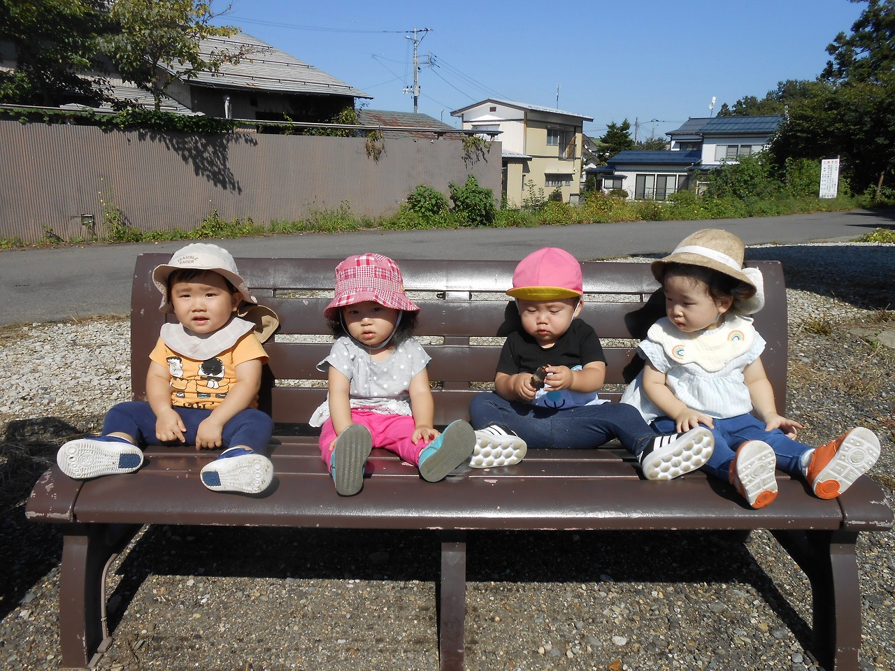 少しずつ涼しい日が増えてきたので、天気がいい日はお散歩を楽しんでいます!トンボを見つけて指さしたり、葉っぱを拾ったり、砂をさわったり…自然からたくさんの刺激をもらっているひよこ組です♪お友だちとのかかわりやお話も上手になってきて、かわいらしいやりとりにほっこりの毎日です♡