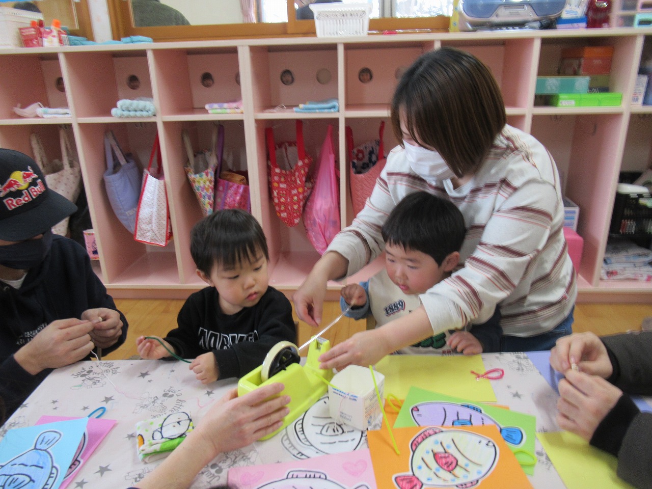 製作やあそび時間では、保護者の方と一緒に楽しみながら取り組む様子もあり、子どもたちの笑顔があふれていましたね!