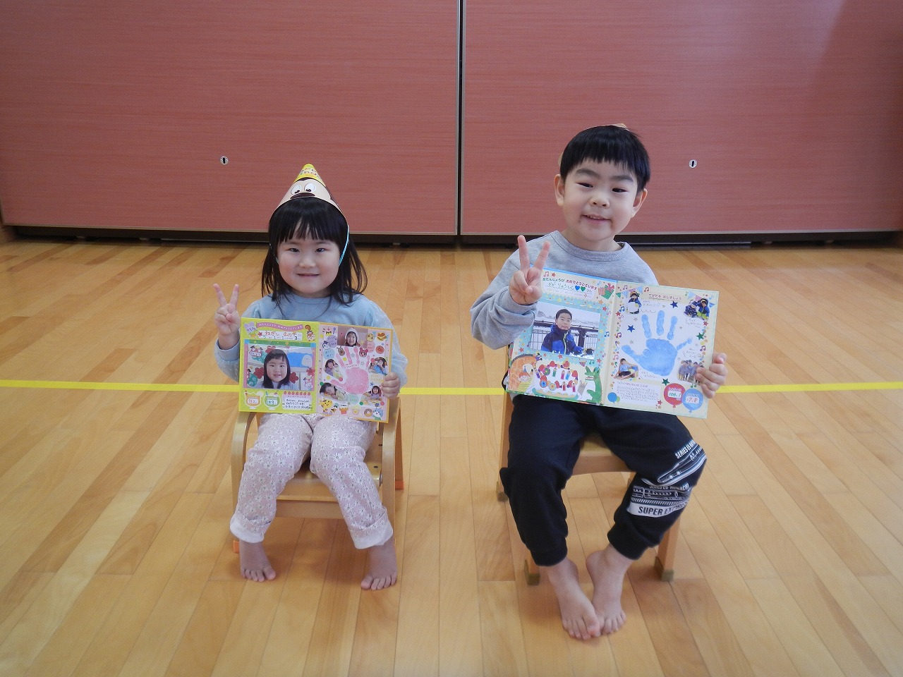 1月お誕生会が行われました!残念ながら欠席のお友だちもいましたが、2人のお誕生児のお友だちが元気いっぱい自己紹介をしてくれました!みんなでお祝いした後は、「てぶくろ」のパネルシアターを鑑賞♪たくさんの動物が登場すると、「次はだれかな?」と楽しそうにお話しながら見入っていた子どもたちでした☻お誕生日おめでとうございます☆