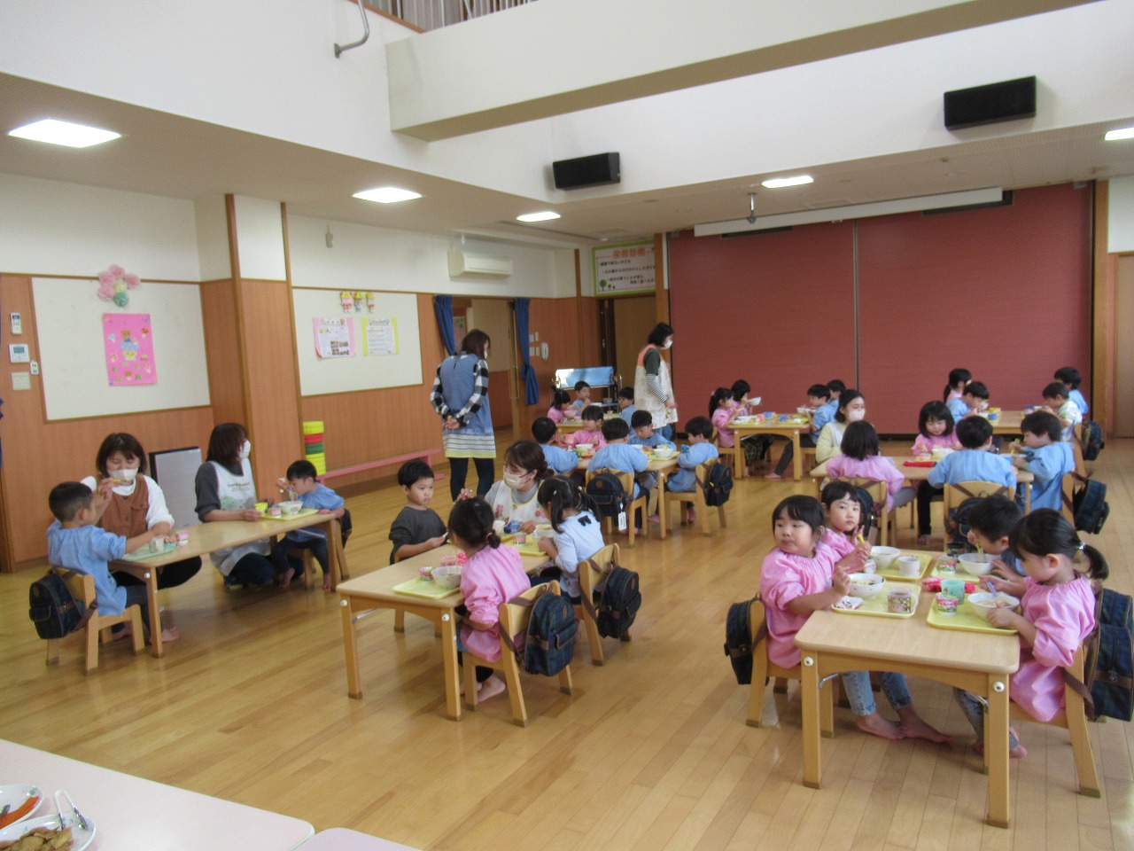 今日は子どもの日お楽しみ会がありました。「金太郎」のパネルシアターでお話を聞いたり、ゲームに参加したりして、みんな楽しんでいました♪給食では、こいのぼりのミートローフや、手巻き寿司など、「おいしい!」と喜んでいました(*^^)v