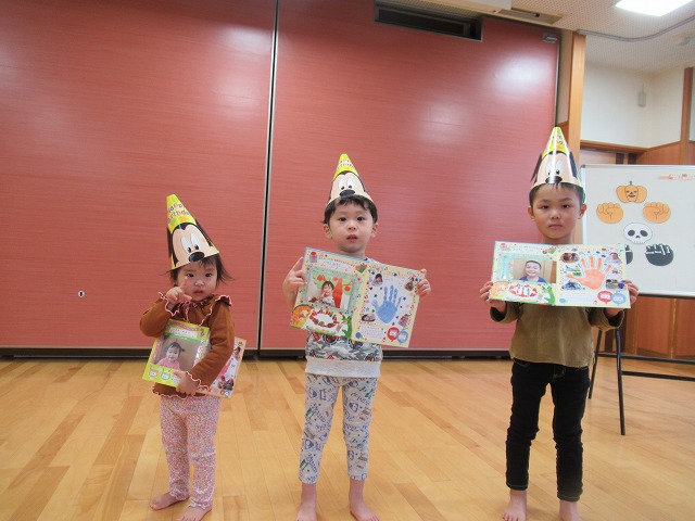 今日は10月生まれのお誕生会がありました。お誕生日のお友だちは元気いっぱい、立派にインタビューに答えていました。ハロウィンのパネルシアターでは、「トリック・オア・トリート!」の大きな声で登場した誕生日ケーキに大喜びでした♪お誕生日おめでとうございます☆