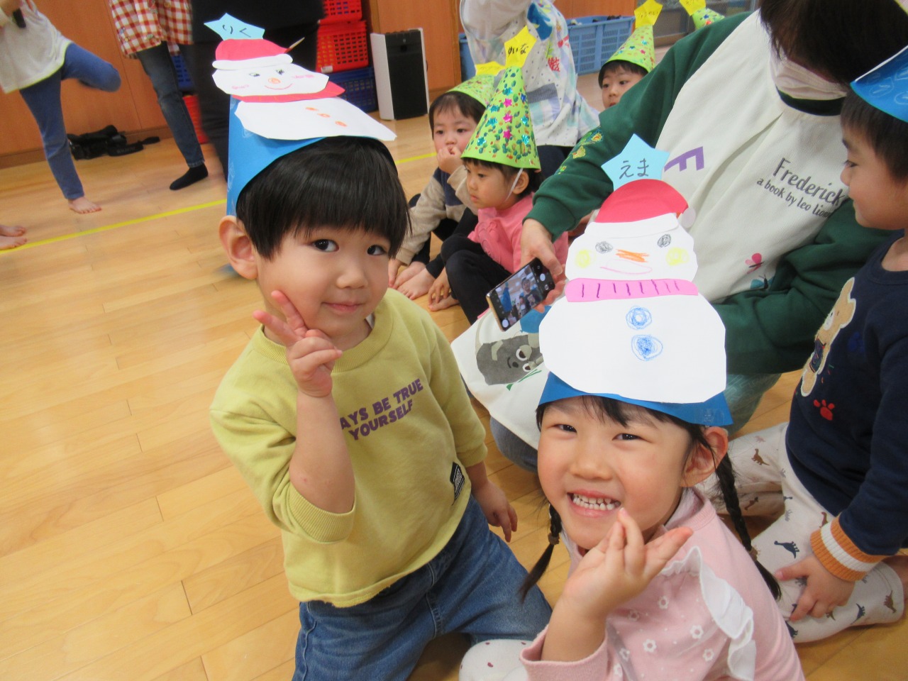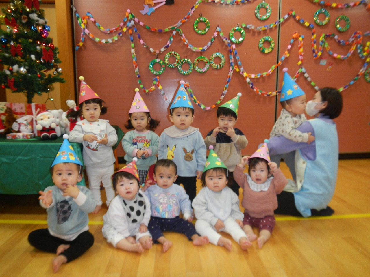 外はすっかり冬の寒さですが、子どもたちの笑顔と元気な声で、ほっこり暖かい毎日を過ごしています♡雪が降ると窓の外を指差したり、「ゆき!」とお話したりして、子どもたちも冬の世界に興味津々です!今年一年、子どもたちのたくさんの成長にふれられたことに感謝し、来年もかわいい笑顔と新しい成長に出会えることを楽しみにしています☆彡