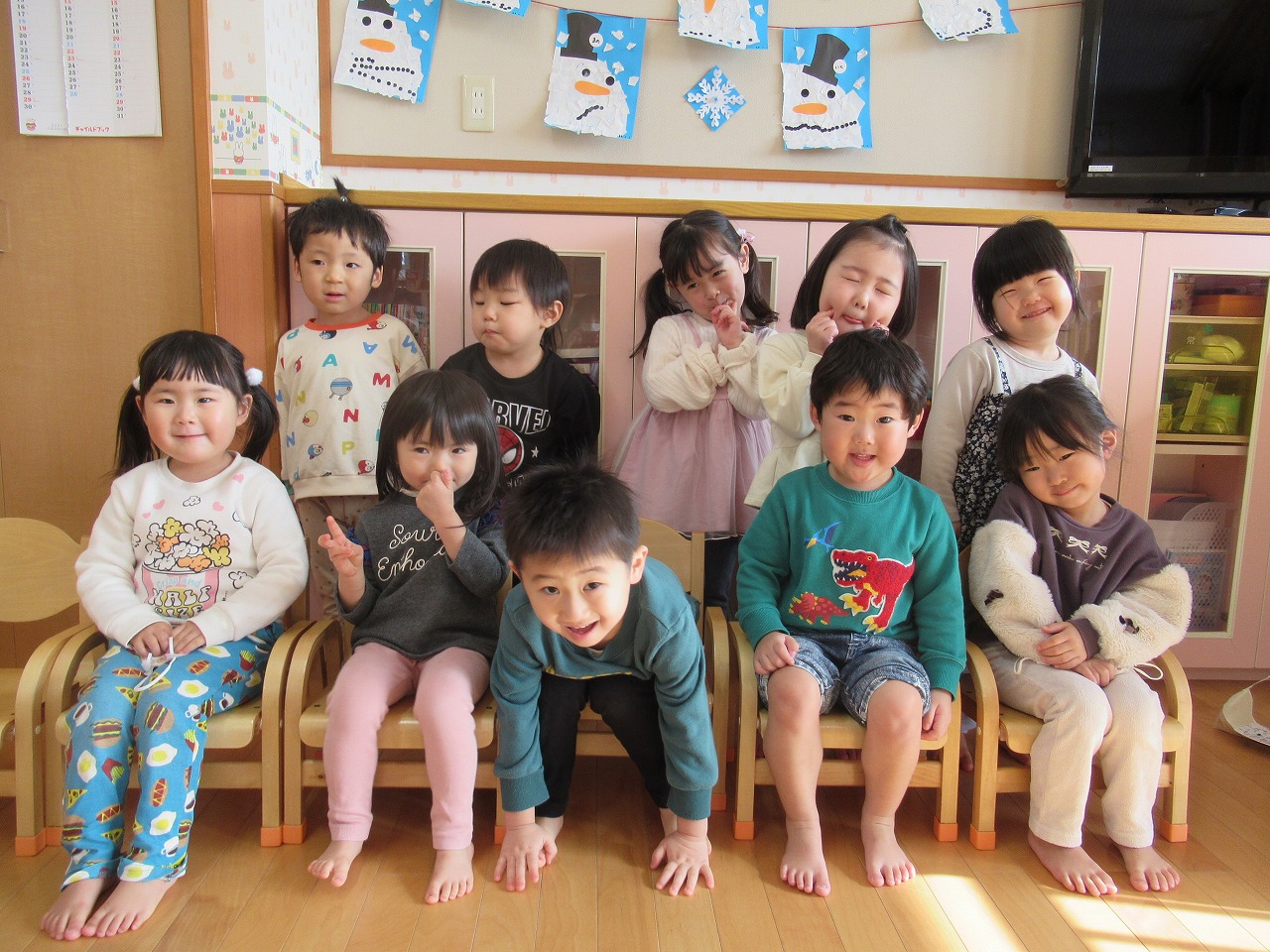 楽しいお正月を過ごし、また子どもたちのにぎやかな声であふれる日々が始まりました♪年末年始のお休みの間にも、お話が上手になったり動きがますます活発になったりと、成長を見せてくれるひよこ組さんです。最近は、お友だちとのかかわりもますます増えてきました!かわいらしいやりとりに加え、活発さもレベルアップし、かかわりのバリエーションも豊かです!けがなどに十分注意しながら見守っていきたいと思います。今年も一年、よろしくお願いいたします。