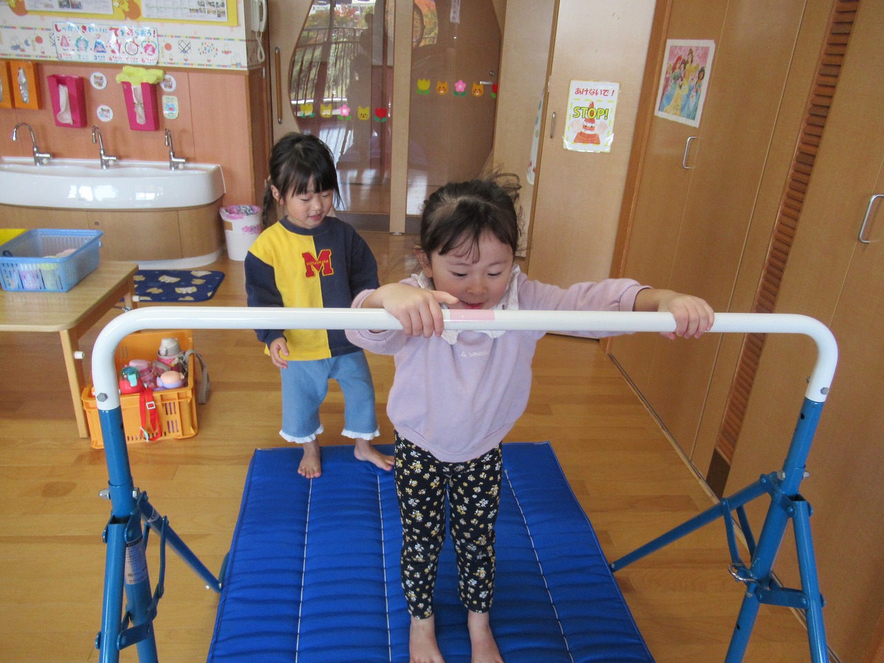 気温も下がり始め、過ごしやすくなってきました。今月は、マット、鉄棒、跳び箱などで全身を使ったあそびを楽しみました♪疲れを見せることなくたくさんあそび、みんなの大ジャンプやでんぐり返しには私たちも驚かされています!できることがどんどん増えていって、成長が止まらないこねこさんです☆