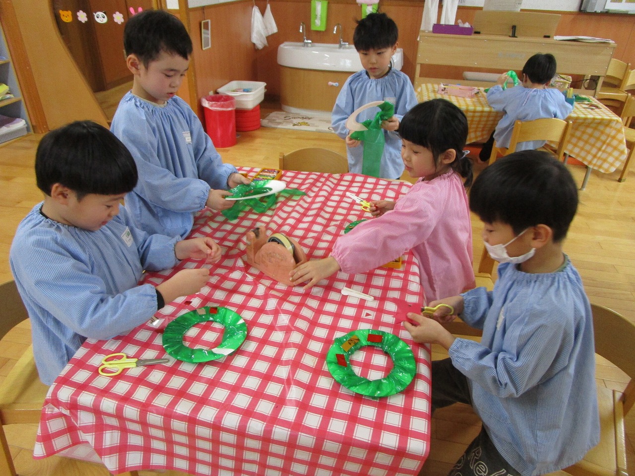 おゆうぎ会に向けた活動では、友だち同士で頑張りを認め合う姿もみられ、みんなで協力しながら取り組むことができ、成長が感じられました。12月はクリスマス会があり、くま組が進行役なので、みんなで楽しい会になるよう頑張りたいと思います。