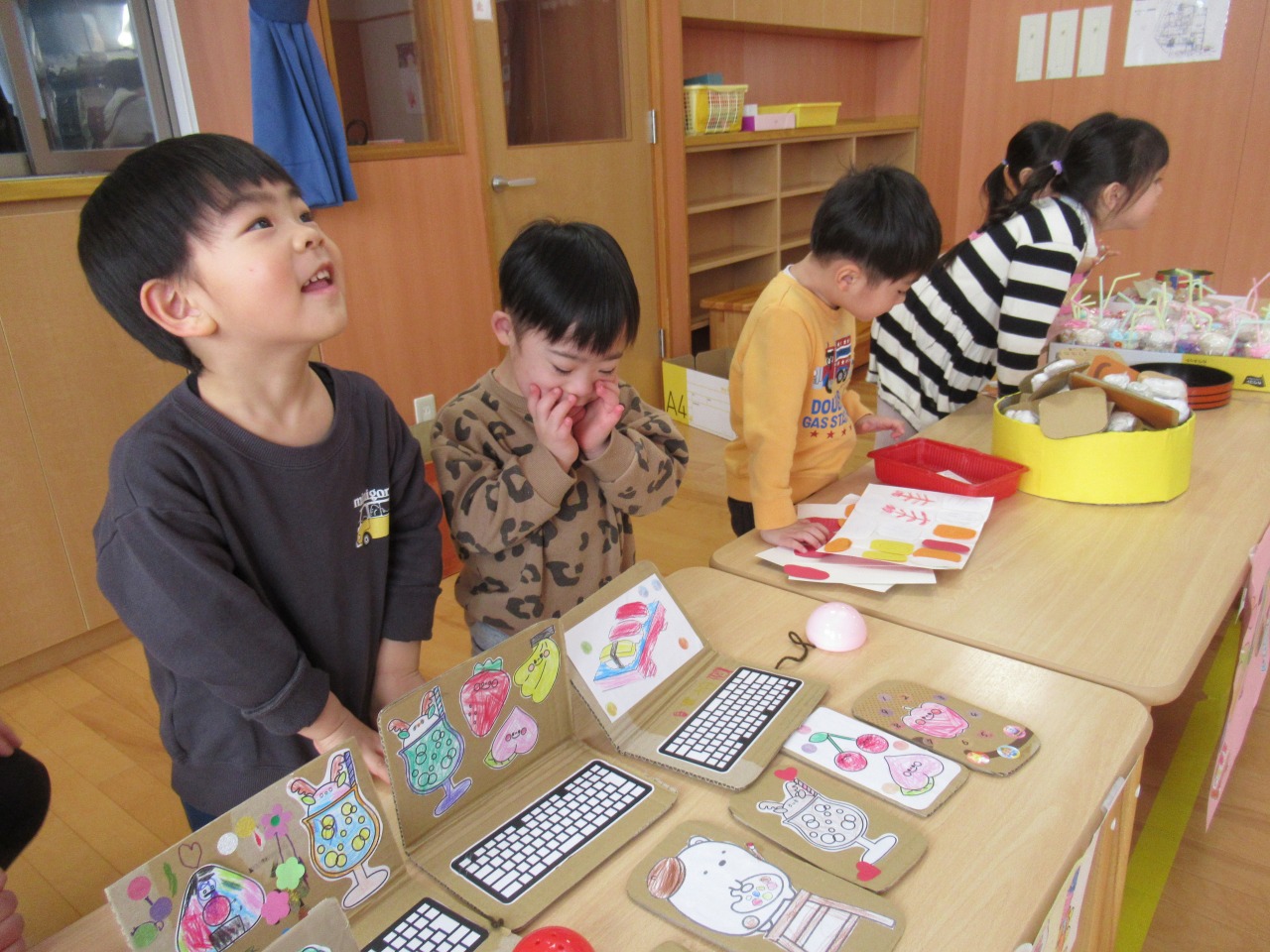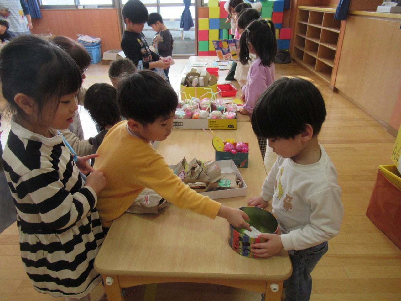 店員さん側に立つのは初めてだった今年は、準備から本番までたくさんの出来事がありました。様々なアイデアを出し合い、製作が進められていく中で、意見のぶつかり合いもあり、一度中断しのんびり休憩する日も!しかし、物事にお友だちと一緒に取り組む楽しさや日に日に商品が増えていく嬉しさを感じている子どもたちでした。うまくいった経験だけでなく、うまくいかなかった経験も、今後の成長の糧にしていきたいと思います!